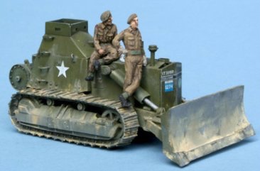An American designed and manufactured vehicle, the Caterpillar D7 medium bulldozer began service with the U.S. military during the Second World War. Its role included earthmoving, mine clearing, and supporting works of the engineers. On the landing beaches it was also used to clear beach obstacles, create gaps for following units, and to push/drag immobilised vehicles.