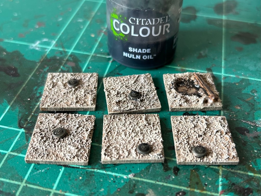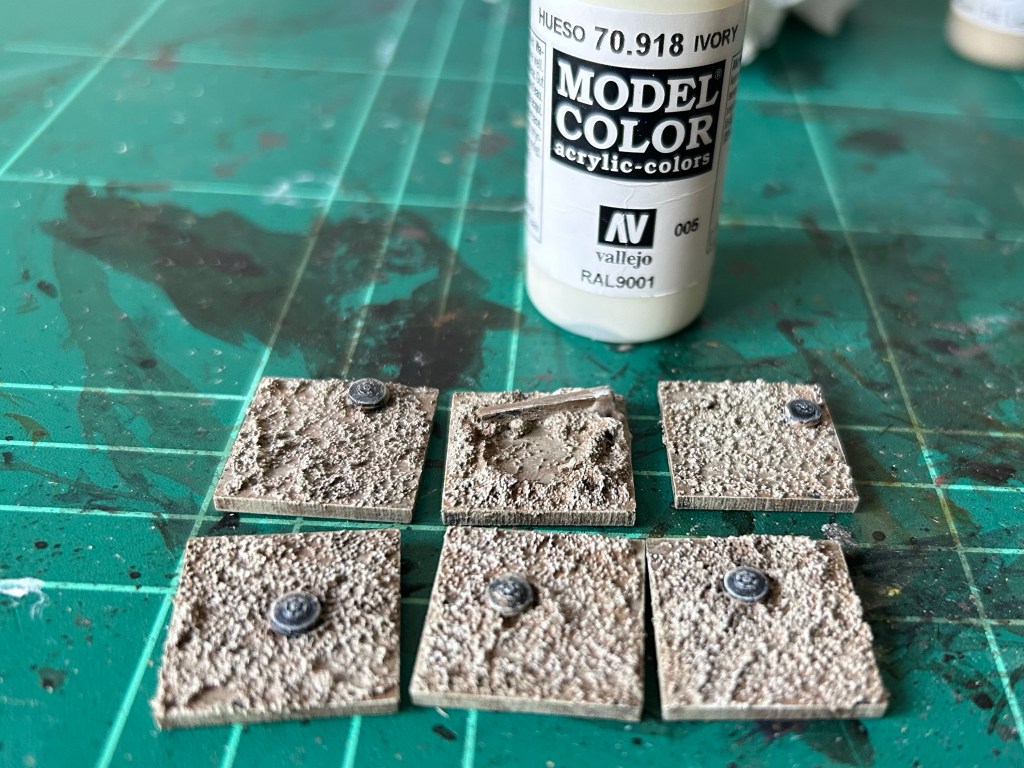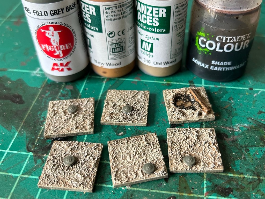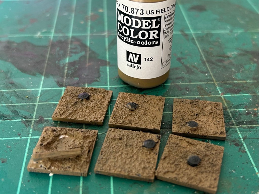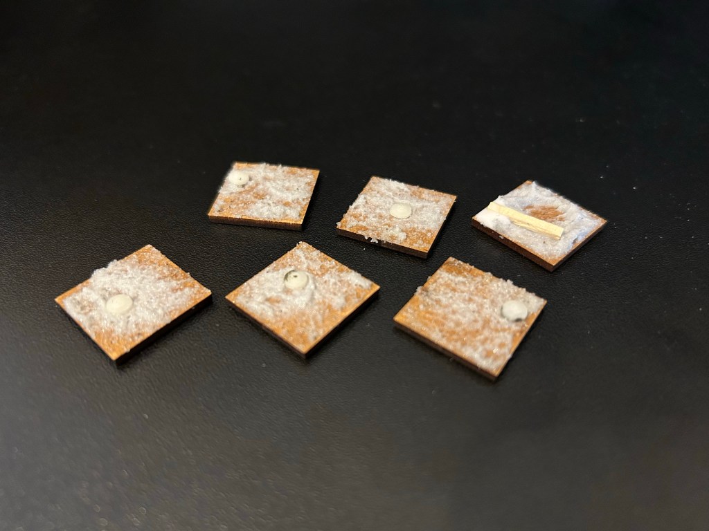 I wanted these to be usable for Battlegroup (where you place marker to signify a minefield in the middle of the minefield) and for other rules, so used a 20mm square mdf base as a starter.