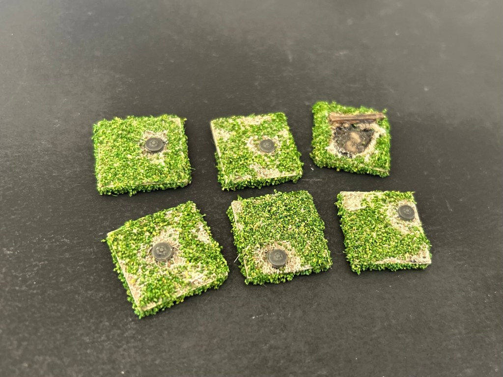 Wanting something a little more subtle than a ‘Minen’ sign, I dug out the remaining Teller mines I picked up from Scalefiend Miniatures before Christmas. I used most of them on the Hemmbalken log ramp beach obstacles as you can read about here on Wargame Despatches but luckily I had 5 left. Slight problem as I wanted 6 markers so I got creative!