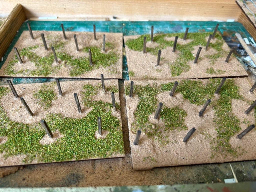 I’ve aimed to build some relatively complex triple-depth entanglements, but you can use the same approach for barbed wire fences. Likewise if you want to build some of these to use in other environments, just alter how you finish off the basing.