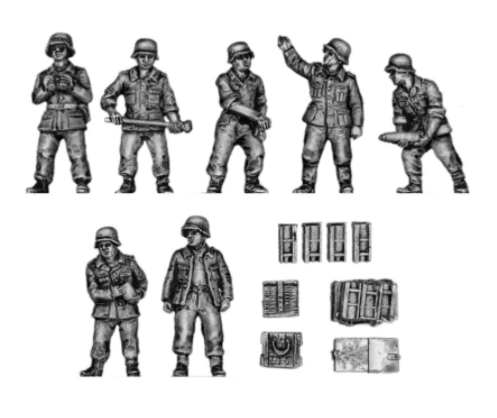 I’ve a box of the Revell artillery which I bought in the 90s, but I was fortunate to be gifted a pair of the SHQ leFH 18 guns last year. While there are a lot of options out there for crew, it was an easy choice – AB Figures of course! You get seven crew figures, with some boxes and shells as accessories, in the aptly titled “10.5cm Field artillery crew and accessories” set. Fast delivery as always from Eureka UK.