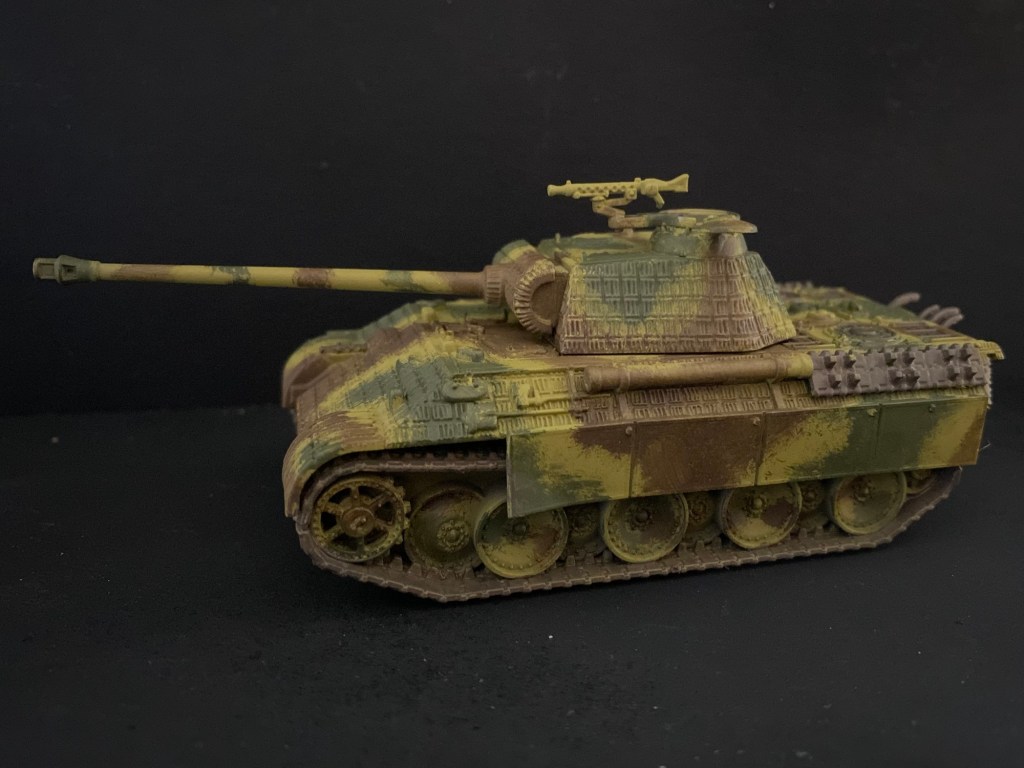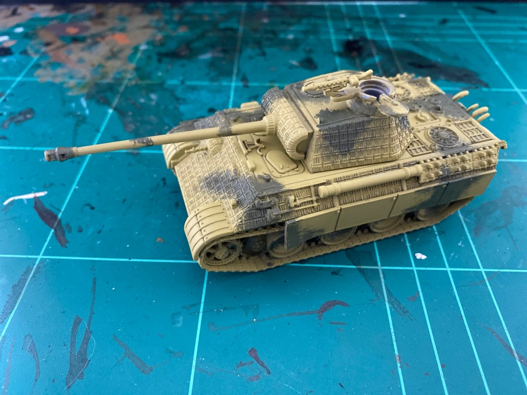 I don’t pretend that my guide is 100% historically accurate as I’ve gone for The Rule of TLAR (That Looks About Right). However, during the war German tank crews would mix their paint with whatever medium was to hand and apply it by spray gun, brush, rags or anything else they could think of. As a result there could be quite a variety of tones and variation in patterns. So I’ve not been too concerned if my pattern isn’t quite neat enough or if the green is marginally darker or lighter than “it should be”.