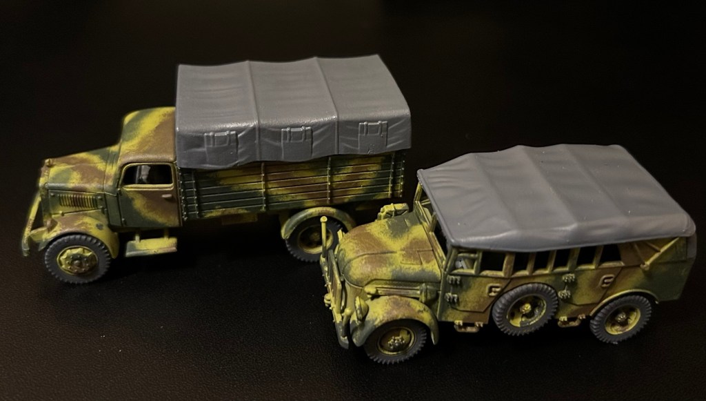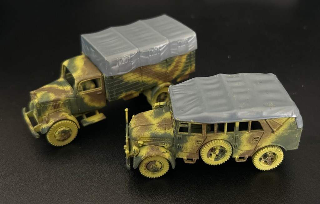 I’ll finish the Steyr in the same style as the Mercedes truck. Then I’m planning to try out a Dunkelgelb and Green pattern on my next German vehicles for 21st Panzer Division in Normandy.