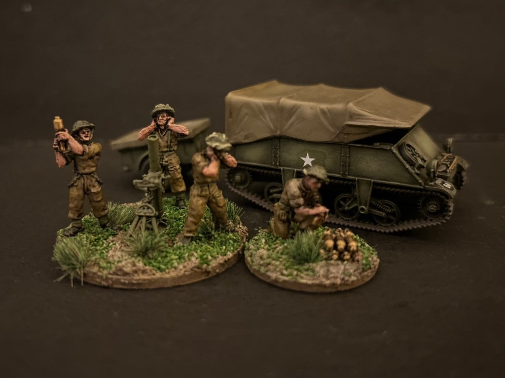 Composed of 4 Mortar Platoons. Each platoon holding 4x 4.2 inch mortars. Transported by Loyd Carriers and GS trailers. You can read more about Loyd Carriers in one of my earlier posts here.