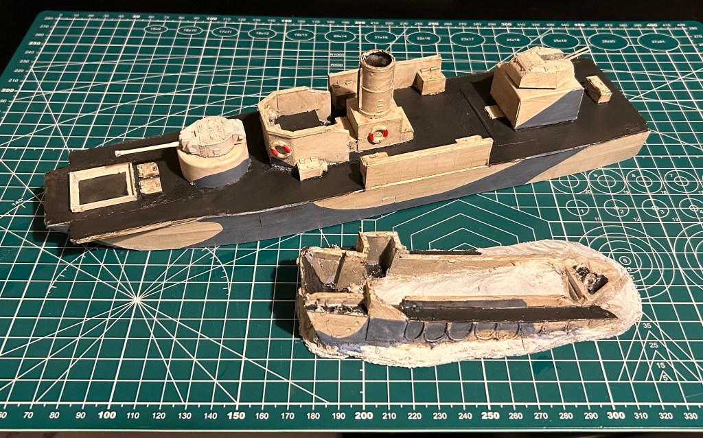 A little progress here, mostly with the LCI(S) conversion to LCS(L). On DDay these vessels helped to guide in the Sherman DDs, mine is likely to do the same and offer some ‘eye candy’. All but one landing craft is now built, and including the LCS(L) there are 8 primed grey and then base coated white. A few evenings and these will be ready for action.